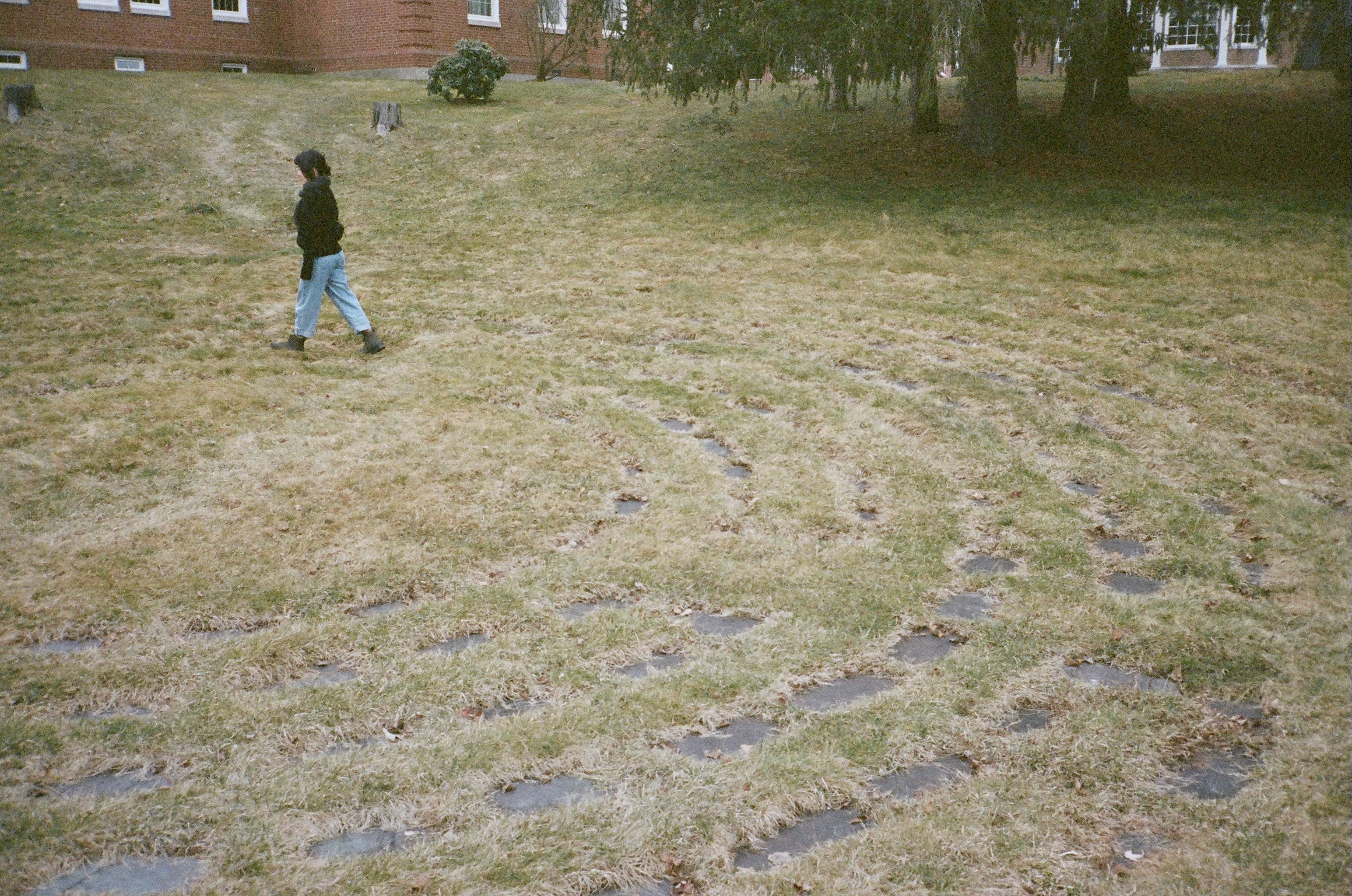 We stopped along the way to check out the overgrown slate-tiled lawn labyrinth on the closed college’s grounds, but I was too distracted by my anticipation of the pigs to remember much about it. Ten minutes later, we arrived back at the farm. But there were no pigs in sight.